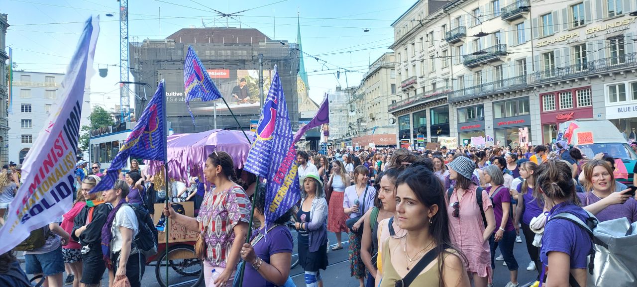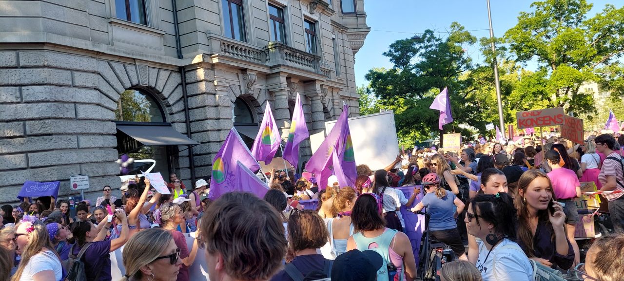 Die Geschichte des Schweizer Frauenstreiktages in der Schweiz ist noch gar nicht so alt und sie beginnt mit der Einführung des Gleichstellungsartikels am 14. Juni 1981. Da dieser nur eine leere Phrase blieb, stieß 10 Jahre später, im Jahr 1991, eine Gruppe Uhrenarbeiterinnen die Idee des Frauenstreiks an. Unter dem Motto „Wenn Frau will, steht alles still“ beteiligten sich rund 500.000 Frauen. Sie bestreikten sowohl die Lohn-, als auch die Hausarbeit und thematisierten darüber hinaus weitere feministische Forderungen. Es war die größte politische Massenmobilisierung in der Schweiz seit dem Generalstreik nach dem Ersten Weltkrieg. Bis heute fordert die feministische Streikbewegung unter anderem bessere Löhne und Arbeitsbedingungen in Branchen, in denen überwiegend Frauen beschäftigt sind, konkrete Maßnahmen bezüglich der gerechten Aufteilung von Haus- und Sorgearbeit, die Abschaffung des privaten Krankenversicherungssystems und vollständige Übernahme der Kosten von reproduktiver und sexueller Gesundheit.