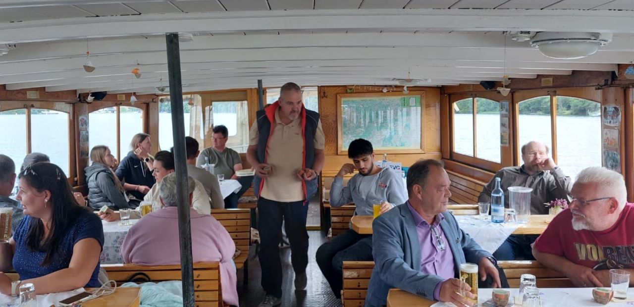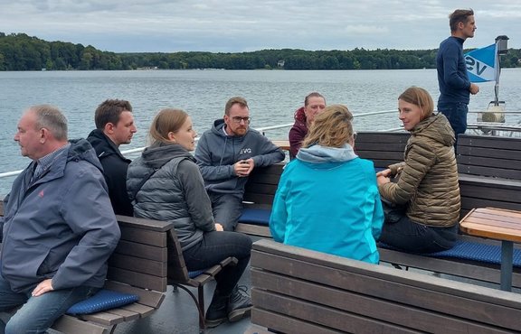 Mit an Bord waren auch Vertreterinnen und Vertreter der EVG-Sozialpartner, VDES, Stiftungsfamilie, Bahn BKK, Fonds soziale Sicherung, DEVK und Sparda Bank. In lebhaften Gesprächen und sicherem Austausch wurde deutlich, wie wichtig das Kennenlernen ehrenamtlicher Strukturen, die Vernetzung gewerkschaftlicher Arbeit und das gemeinsame Entwickeln neuer Ideen ist. Die Bootsfahrten dienten so auch als eine Art Zukunftswerkstatt, bei der offen und konstruktiv darüber diskutiert wurde, wie die Angebote noch gezielter auf die Wünsche und Bedürfnisse der Mitarbeitenden bei der Bahn zugeschnitten werden können.