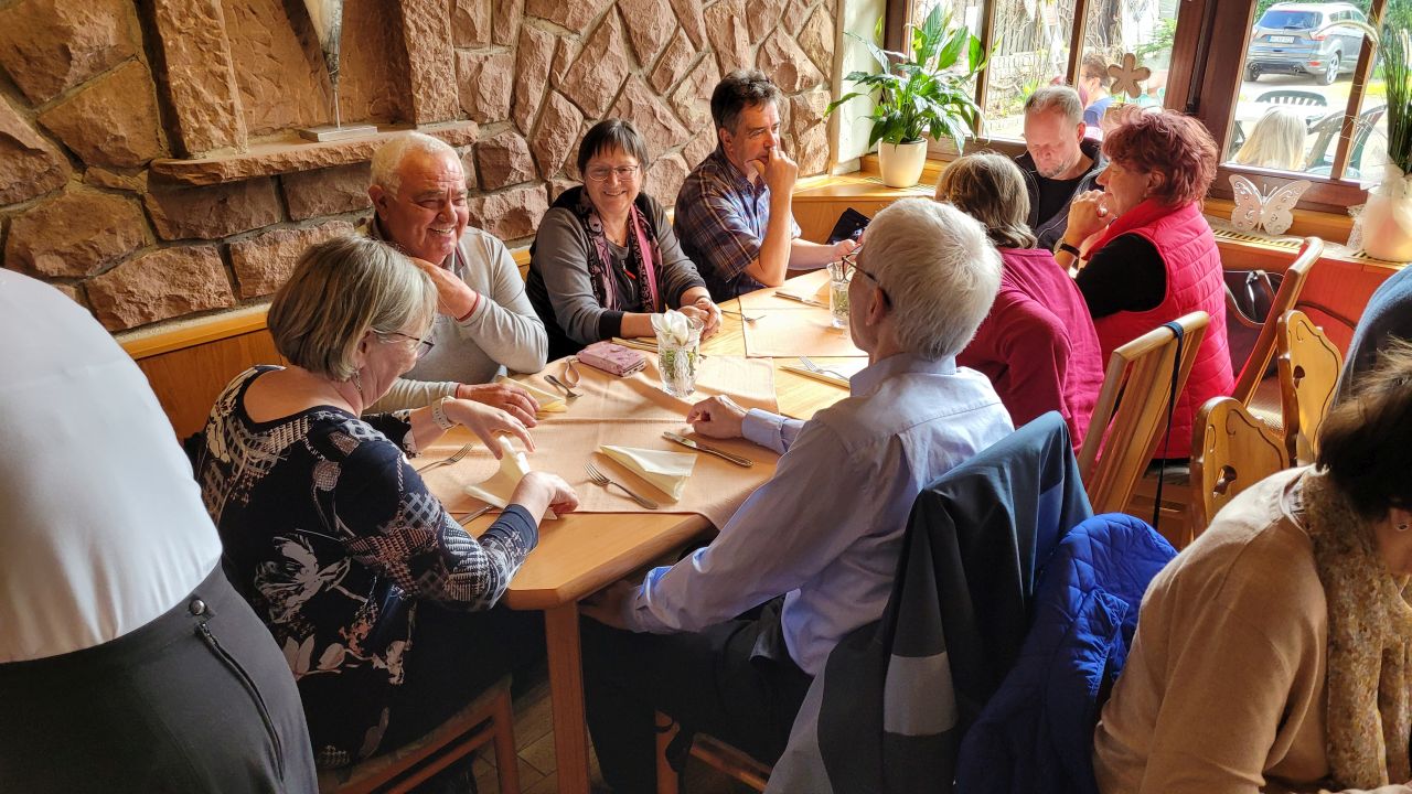Pünktlich um 16:15 Uhr treffen sich alle am Bus. Zur Einkehr haben wir den Schmälzlehof in Furschenbach ausgewählt. Wolfgang Isenmann hat die Speisekarte schon aufbereitet und die Essenswünsche an das Lokal weitergegeben. So werden alle schnell versorgt.