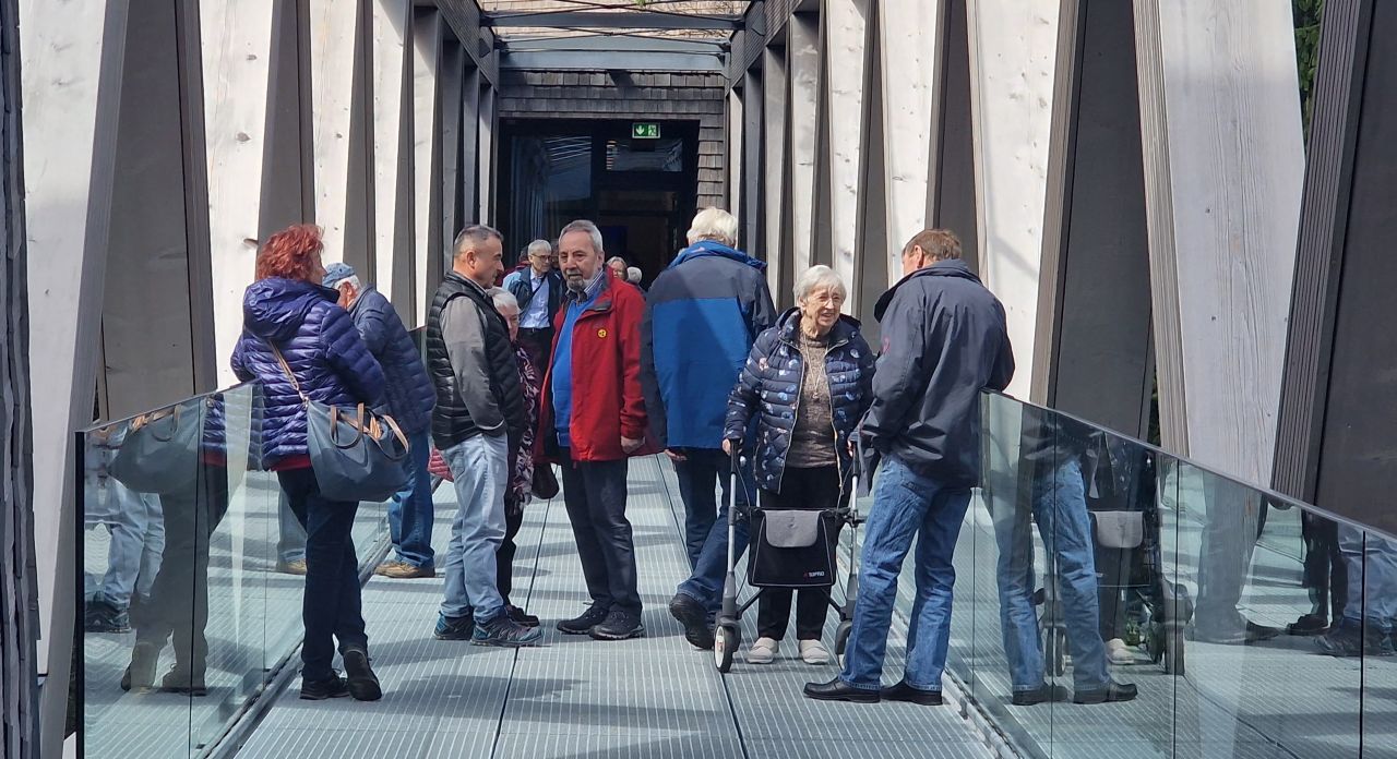 Angekommen auf dem Ruhestein bei schönstem Wetter, werden die Senioren in drei Gruppen geteilt. Durch die Dauerausstellung werden nur kleine Gruppen geführt. Alles, was der Nordschwarzwald zu bieten hat, wird ausgestellt und vielseitig präsentiert. Der Außenbereich führt über die Baumwipfel zu einem Aussichtsturm.