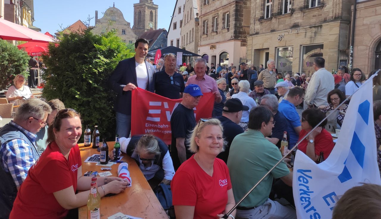 Am 01. Mai beteiligte sich der Ortsverband zahlreich an der Maikundgebung. Hauptredner war Matthias Birkmann, Geschäftsstellenleiter der EVG Nürnberg, der mit seiner Rede wichtige gewerkschaftliche und gesellschaftliche Themen in den Fokus stellte.