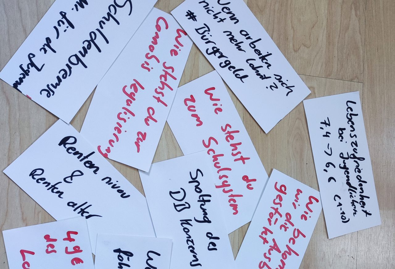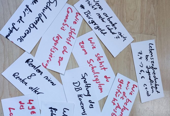 Weitere Themen waren das Schulsystem, Lebenszufriedenheit von Jugendlichen, die Stärkung der Ausbildung, die Cannabis-Freigabe und schließlich auch die Verhinderung der Zerschlagung der DB AG. Kevin Kühnert ging auf die Fragen ein und erläuterte die Standpunkte seiner Partei.