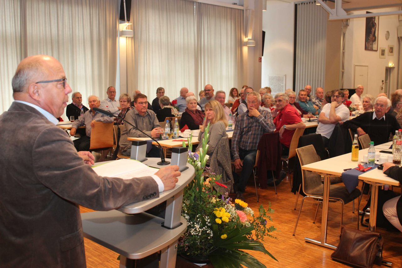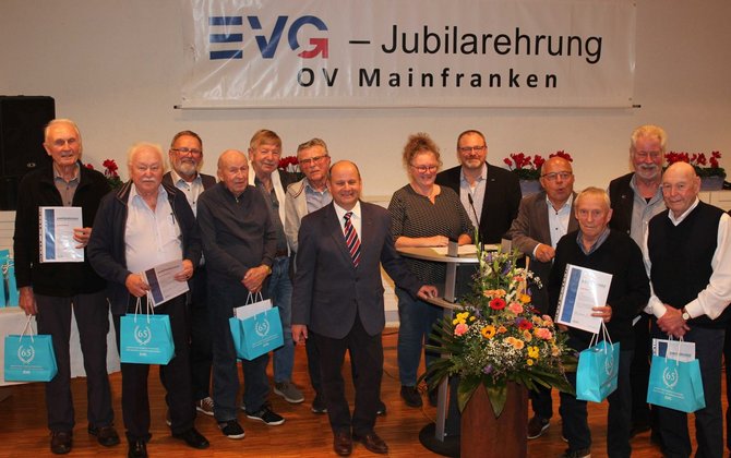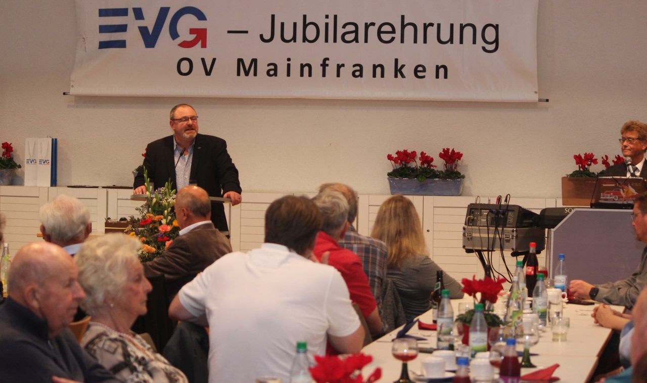 Mit den Worten „Unser aller Dank gilt Euch für die jahrzehntelange Treue zur EVG“, begrüßte der Ortsverbandsvorsitzende Thomas Scheb die anwesenden Jubilare. 18 Jubilare wurden für 25 Jahre, 18 Jubilare für 40 Jahre, 71 Jubilare für 50 Jahre, 18 Jubilare für 60 Jahre, 29 Jubilare für 65 Jahre, 7 Jubilare für 70 und 2 Jubilare für 75 Jahre Mitgliedschaft zur EVG geehrt. Scheb hob den anwesenden Jubilar Kurt Rosenberger (Gemünden) für 75 Jahre Mitgliedschaft besonders hervor. Er ergriff spontan das Wort und bedankte sich für die Ehrung mit den Worten: „Er war mir von Beginn meiner Beschäftigung klar, dass ich die gewerkschaftliche Idee der Solidarität unterstütze und das ist mir bis heute eine Herzensangelegenheit geblieben.“