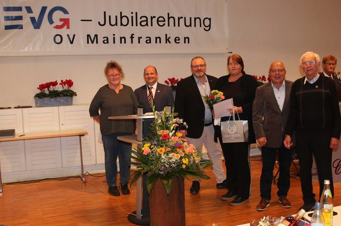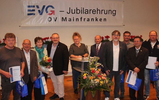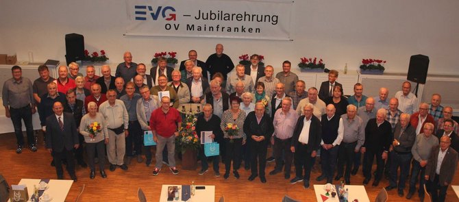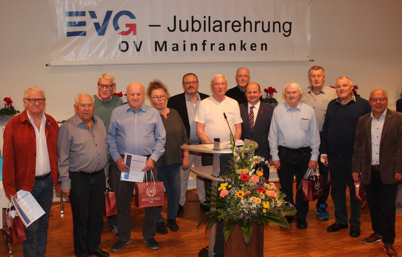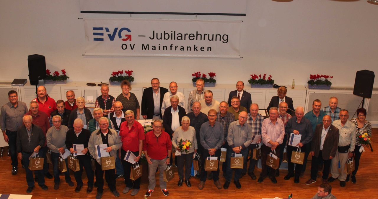 Alle Jubilare zusammen brachten es auf 8.325 Jahre Gewerkschaftszugehörigkeit und sie standen im Mittelpunkt der größten Veranstaltung des Ortsverbandes Mainfranken.