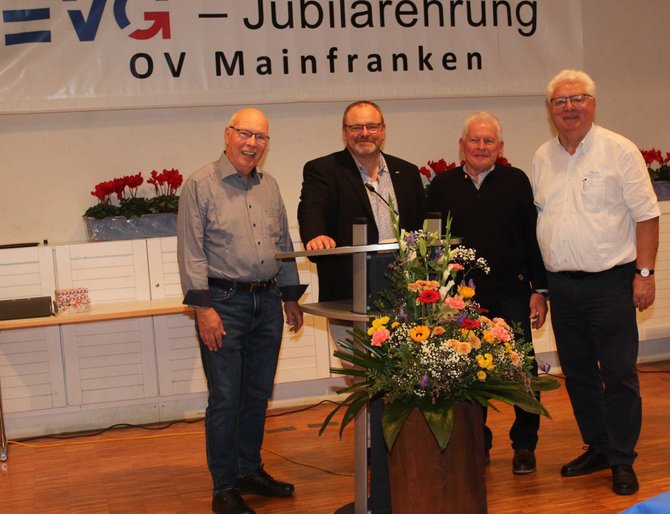 Fast genau ein Jahr nach seiner Wahl in den vierköpfigen geschäftsführenden Vorstand der EVG, hielt Frank Hauenstein die Laudatio auf die treuen Eisenbahner:innen. Die Wertschätzung des bei weitem nicht selbstverständlichen, ehrenamtlichen Engagements, drückte Hauenstein in den übermittelten Grüßen des Bundesvorstandes und dem Dank an die Jubilare, den Ortsverband Mainfranken und die EVG-Geschäftsstelle Würzburg aus. In Zeiten von Mitgliederzahlen um die 500.000 funktionierte das System Eisenbahn bei jedem Wetter stabil; heute läuft es selbst bei bestem Wetter alles andere als zuverlässig. Fahrgäste und Güter pünktlich von A nach B zu bringen, ist immer noch der Ansporn aller Eisenbahner:innen. Nicht nur das Thema Verspätungen und die viel zu zahlreichen strukturellen Probleme bei der Bahn bieten genug Punkte, dass die „Bahn nach Fußball auch heute noch das Gesprächsthema Nr. 1 ist“.