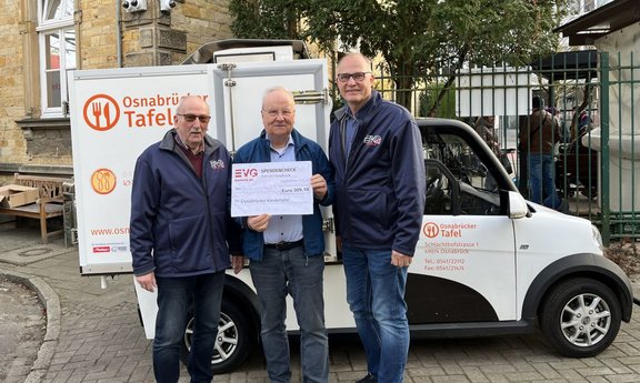 Heinrich Klumpe und Stefan Deeters überreichten im Namen der EVG einen Spendenscheck in Höhe von 309,10 Euro an Hermann Große-Marke, den Leiter der Osnabrücker Tafel. Die Freude über die Unterstützung war groß, denn die Aufgaben der Kindertafel sind umfangreich und von zentraler Bedeutung für viele Familien in der Region.
