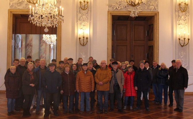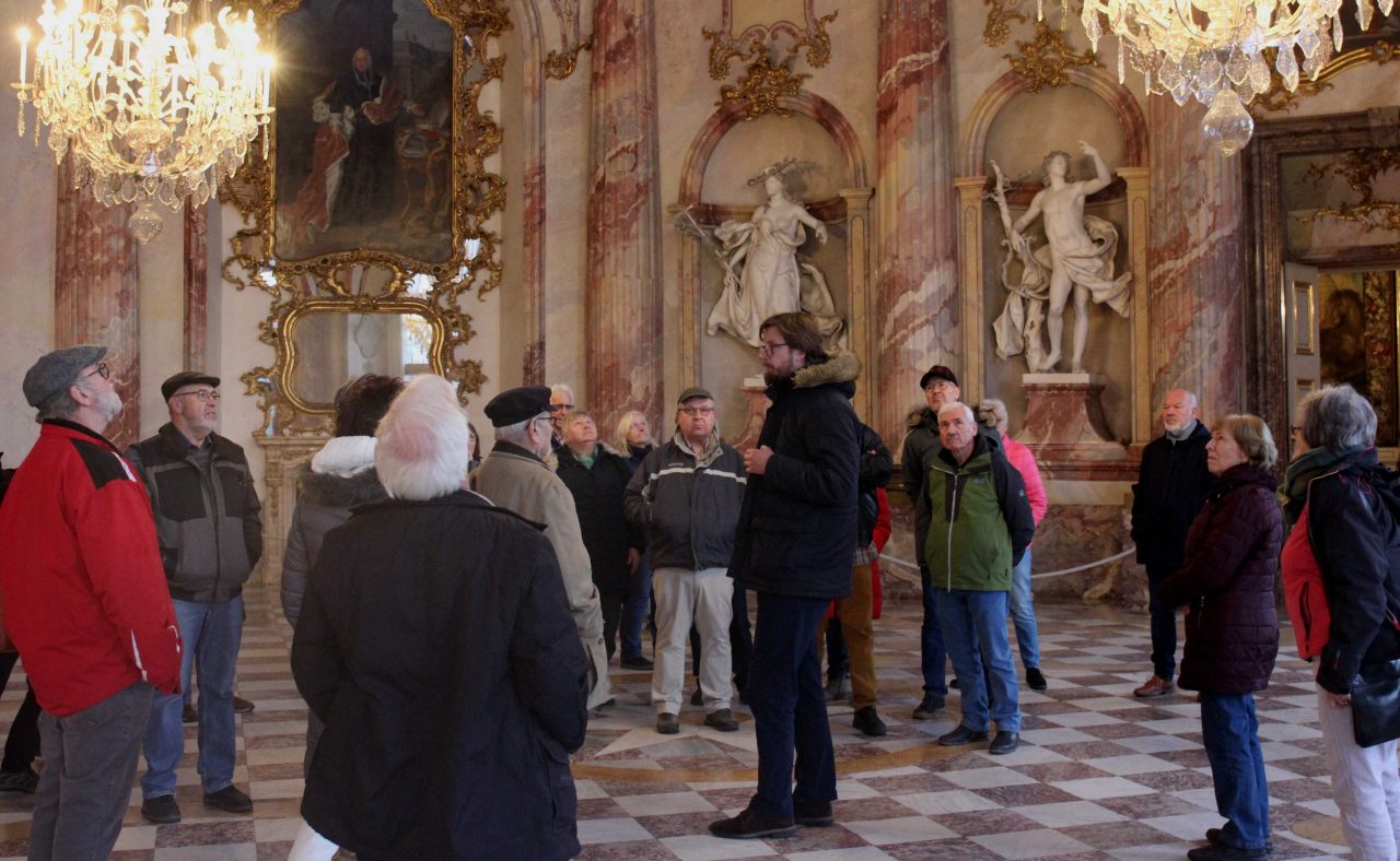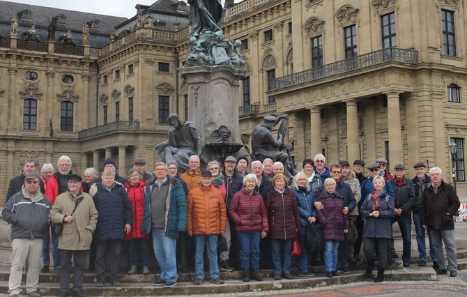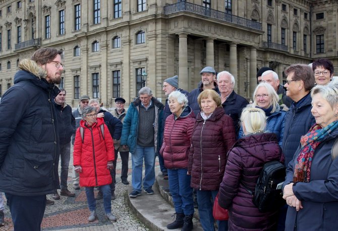 Rund 40 Teilnehmer:innen trafen sich am Frankonia-Brunnen vor dem Residenzgebäude und erlebten mit Begeisterung eine Führung durch die Residenz. Der Schlossführer der Bayerischen Schlösser- und Seenverwaltung verstand es außerordentlich gut, die Entstehungsgeschichte, ohne viele Jahreszahlen, den interessierten Besuchern zu schildern.