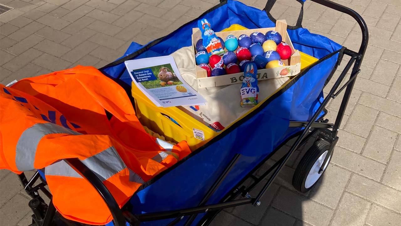 Als Zeichen der Wertschätzung wurden EVG-Ostereier und blaue Osterhasen verteilt. Eine kleine Geste, die den Zusammenhalt im Team stärkte und für Freude sorgte. In einer Zeit, die von Herausforderungen geprägt ist, war es eine Gelegenheit, um Zusammenhalt und Wertschätzung zu zeigen.