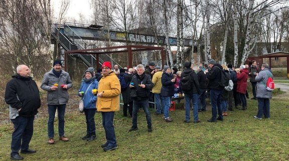 Die erste Rast fand am alten Westbahnhof statt. Dort wurden die Teilnehmenden mit Broten und Getränken versorgt. Nach der Stärkung ging es weiter in Richtung ehemaliger Nordbahnhof. Gegen 17:30 erreichten wir dann eine Gaststätte unseres Vertrauens.