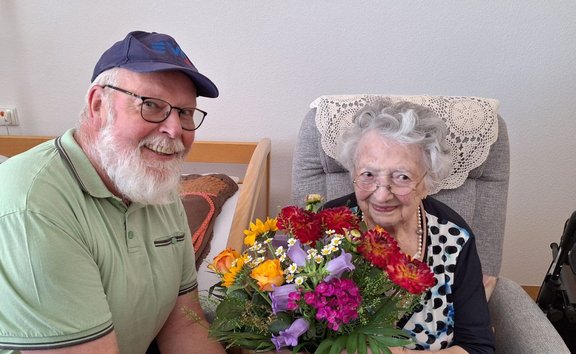 Die Freude über den Besuch und den überreichten Blumenstrauß war sehr groß und es folgten noch viele Erinnerungen an die zurückliegende Zeit.
