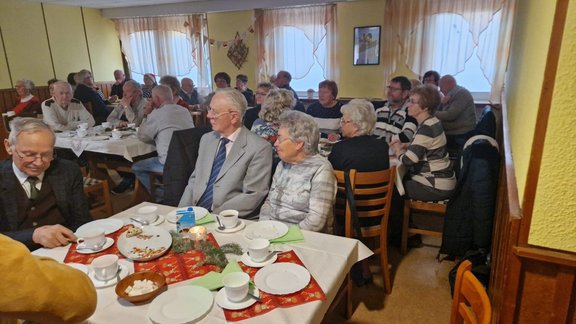 Mit 60 Senioren sowie drei geladenen Gästen aus den unterschiedlichsten Orten, war die gute Stimmung, natürlich mit weihnachtlicher Musik im Hintergrund, schnell hergestellt.