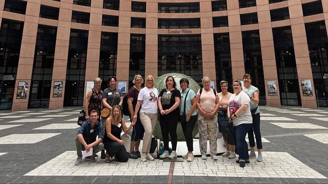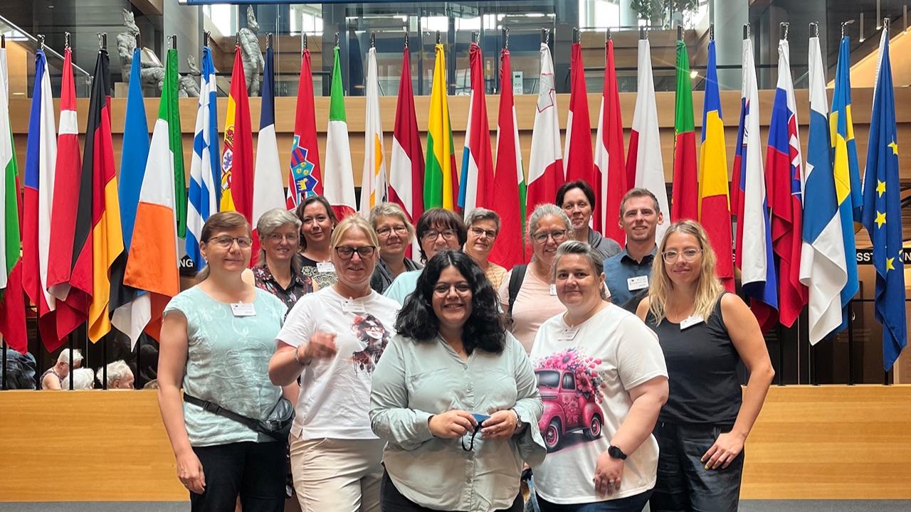 Zum krönenden Abschluss des Besuchs trafen wir die Abgeordnete Vivien Costanzo (SPD) zu einem Gespräch. Seit 2024 ist sie Mitglied des europäischen Parlaments und arbeitet sowohl im Ausschuss für Verkehr und Tourismus als auch im Ausschuss für Beschäftigung und soziale Angelegenheiten, was sie zu einer idealen Ansprechpartnerin für die Fragen der EVG-Frauen machte. Sie beantwortete unsere Fragen verständlich und plausibel und zeigte auch Gründe für die teils langwierigen Prozesse in den Arbeitsabläufen auf.