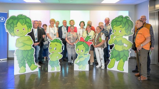 Nach der guten eineinhalbstündigen Führung gabe es zum Schluss natürlich auch ein Gruppenfoto mit den Pappfiguren der dreiköpfigen Zeichentrick-Familie „Saarlodris“, die erstmals im November 1984 als Werbetrenner vom SR zum Einsatz kamen.