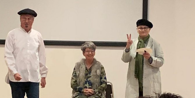 Die Malerin „Madame Monique und ihr Gehilfe Maurice“ (Monika Nutz und Werner Schaude) malten Bilder mit lebenden Menschen. Eine gelungene Aufführung, die mit viel Zwischenapplaus honoriert wurde.