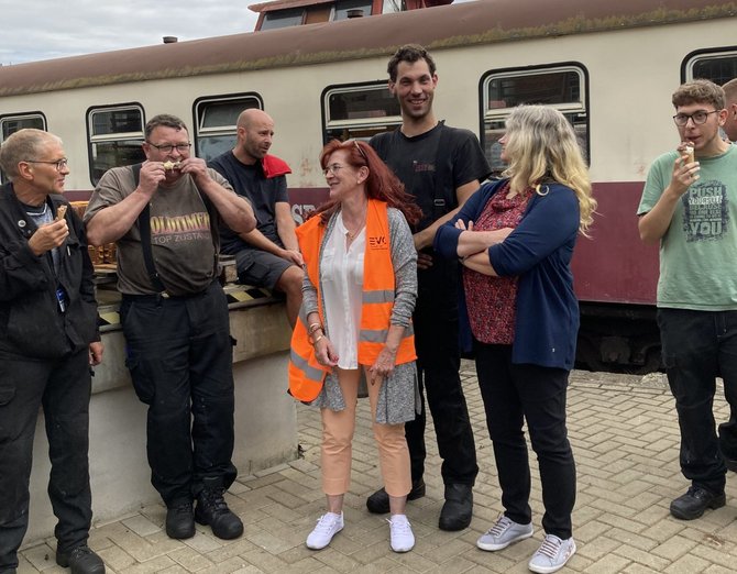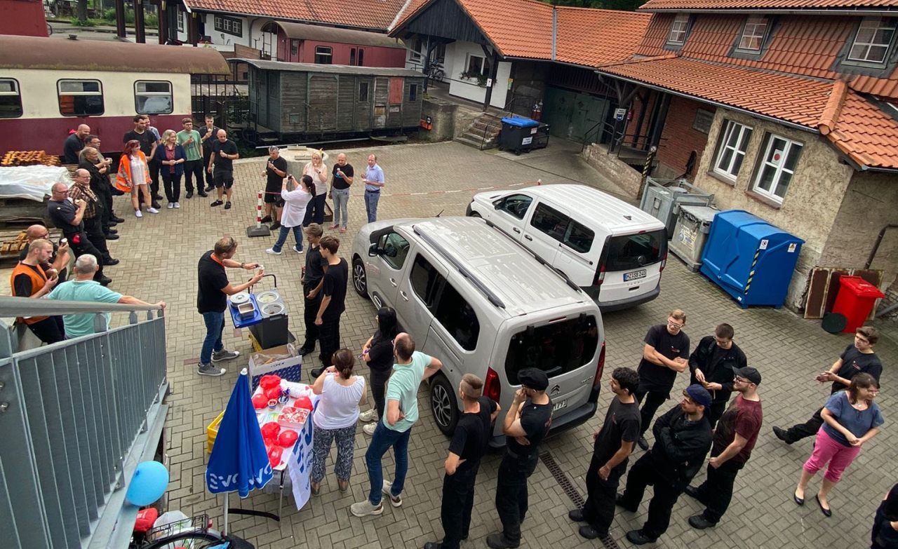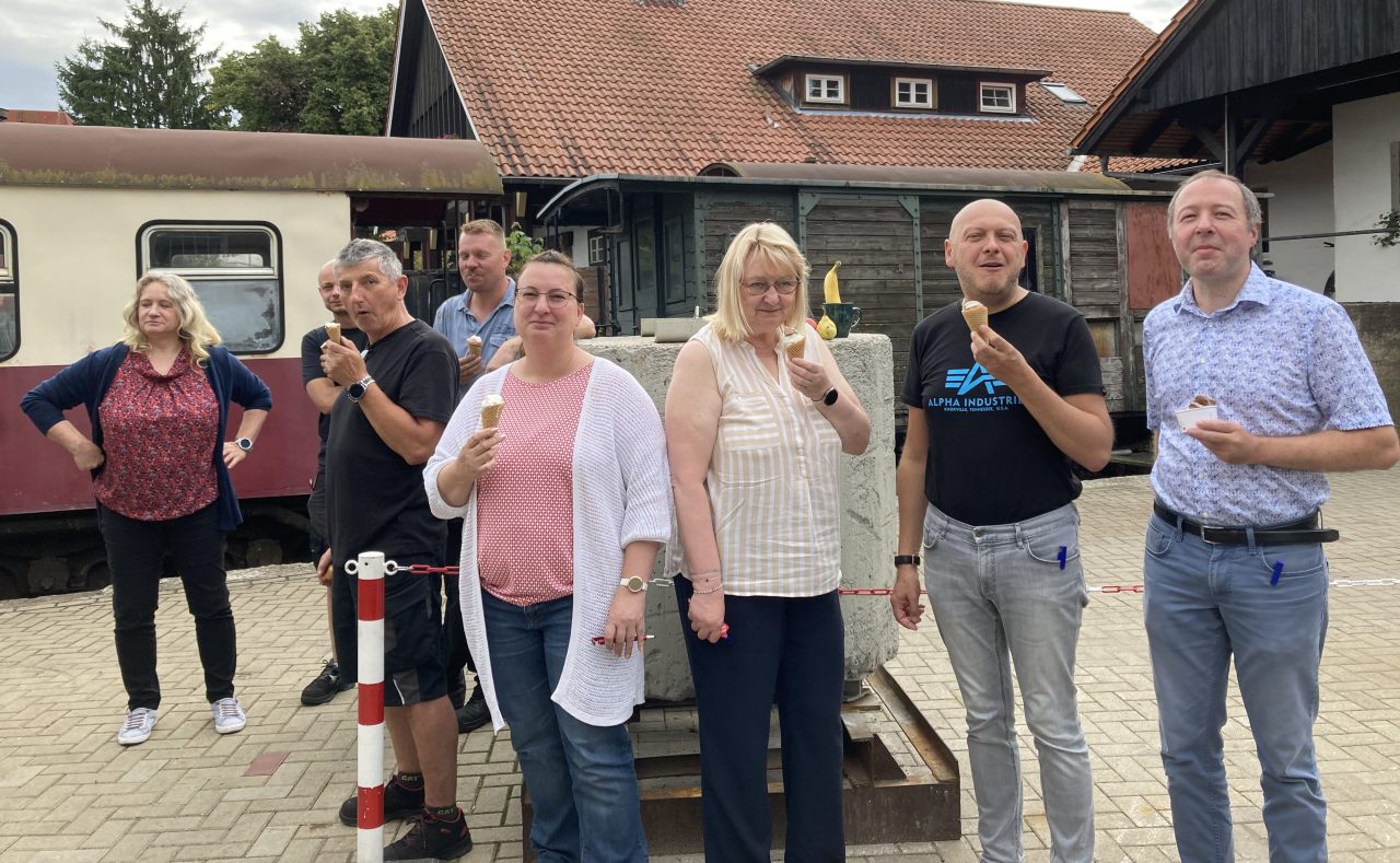 Der erste Stopp war die Werkstatt am Westerntorbahnhof in Wernigerode, dann besuchten wir die Kolleginnen und Kollegen aus der Verwaltung in der Friedrichstrasse. Die Tour endete am Bahnhof in Drei Annen Hohne.