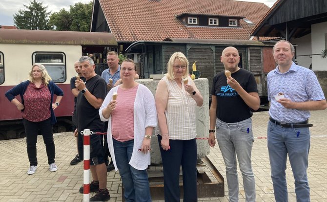 Auch in diesem Jahr ist die EVG-Geschäftsstelle Magdeburg zusammen mit GUV Fakulta und dem Fonds soziale Sicherung auf Sommertour in den Betrieben unterwegs. Passend zum Wetter, verteilten wir bei der Harzer Schmalspurbahn leckeres Eis aus der Eismanufaktur und Obst.