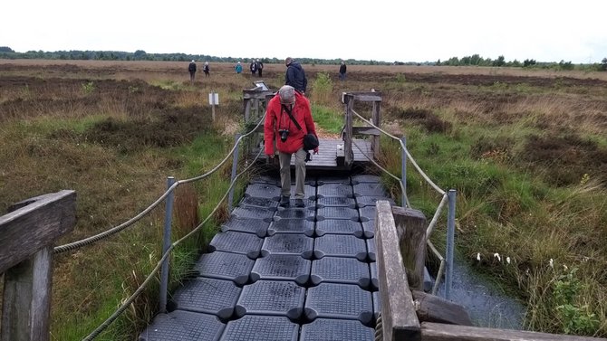 Während der Fahrt konnten wir den Übergang von einer landwirtschaftlich geprägten Kulturlandschaft am Dorfrand hin zur ursprünglichen Moorlandschaft des Naturschutzgebiets beobachten. Trotz des regnerischen Wetters bewahrten wir unsere gute Laune und ließen uns von der fachkundigen Führung der freundlichen Mitarbeiter inspirieren. Ihre Ausführungen über die Geschichte und die Besonderheiten des Moores bereicherten unser Erlebnis ungemein.