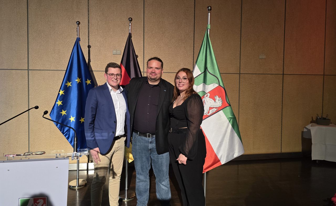 Das Treffen bot eine Plattform für einen konstruktiven Austausch zwischen den Akteuren. Neithard von Böhlen, Leonora Ahmetaj und Linus Spiegel diskutierten über aktuelle Herausforderungen für Arbeitnehmer:innen in Nordrhein-Westfalen. Sie betonten dabei die Bedeutung einer engen Zusammenarbeit zwischen der EVG und dem DGB in NRW, um die Rechte und Interessen der Beschäftigten zu stärken.