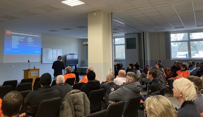 Im Anschluss folgte der Beitrag der Arbeitgeberseite, bevor EVG-Gewerkschaftssekretärin Inka Wunderling über den Stand der laufenden Tarifverhandlungen informierte. Sie unterstrich dabei die zentralen Forderungen der EVG und machte deutlich, dass das aktuelle Angebot der DB AG nach der ersten Verhandlungsrunde inakzeptabel sei. Ihre Botschaft war unmissverständlich: "ZU WENIG. ZU SPÄT. ZU LANG."
