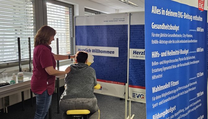 Am Dienstag erlebten wir in der EVG-Geschäftsstelle Halle einen wunderbaren Tag beim „Physio für dich"-Aktionstag. Der Tag war nicht nur entspannend, sondern bot auch Gelegenheit für unsere Kolleginnen und Kollegen, sich zu vernetzen und gemeinsam eine Auszeit zu genießen.