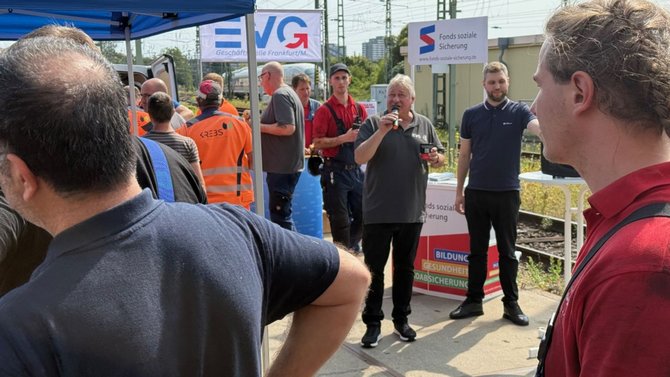 Wichtig seien vor allem „Multiplikatoren“: Kolleginnen und Kollegen, die in den Betrieben unterwegs sind, die guten Leistungen der EVG erläutern und am Ende zur Wahl motivieren. „Wir müssen unsere Mitglieder an die Wahlurne bekommen, aber auch die unentschlossenen Unorganisierten“, erklärt sie. „Wenn wir für die Kolleginnen und Kollegen da sind, schenken diese uns auch ihr Vertrauen“ - und sie zeigt im Regio-Werk in Griesheim, wie das geht.