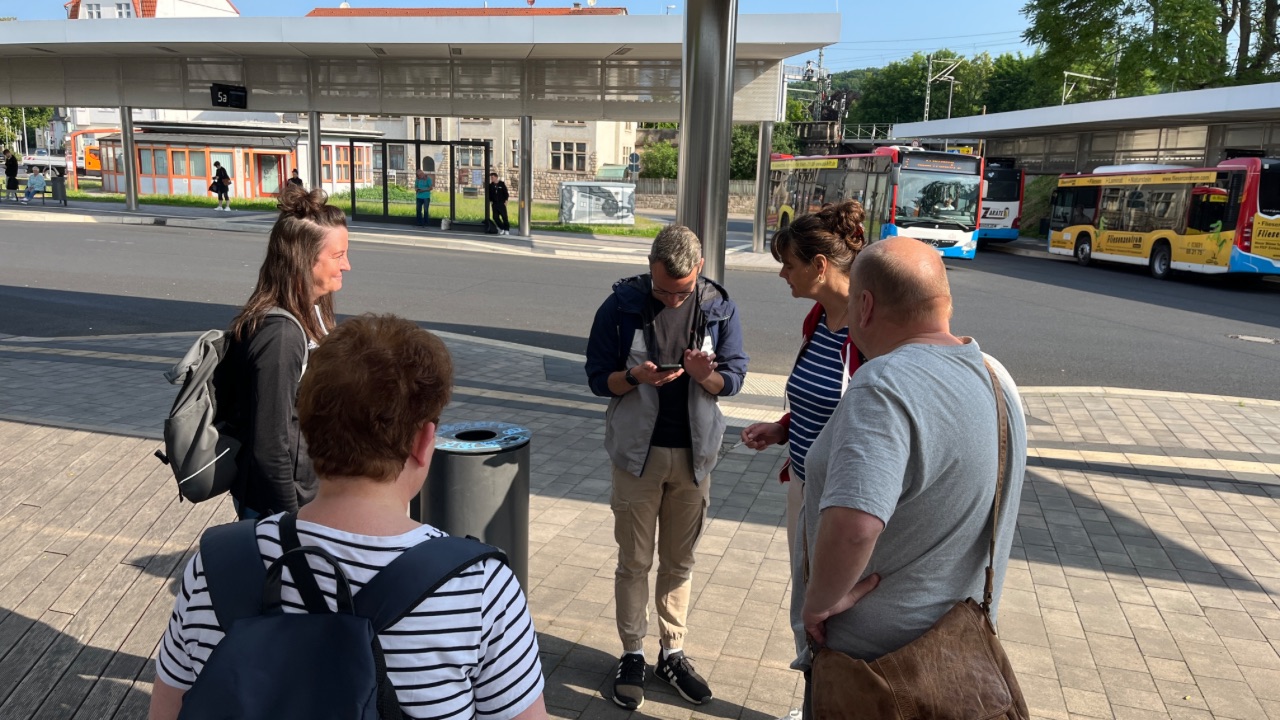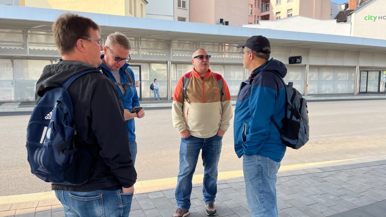 Zum Abschluss gab es am Eisenacher Bahnsteig noch eine schöne Überraschung: Rico Heinemann, Betriebsgruppenvorsitzender bei Abellio, und Leon Kanitz waren ebenfalls gerade vor Ort. Beide hatten gemeinsam mit Kolleg:innen von DB Regio Halle am Betriebsgruppenseminar in Kagel teilgenommen - und so wurde die Gelegenheit für einen kurzen Austausch und netten Plausch gerne genutzt. Die Freude über das spontane Wiedersehen war spürbar.