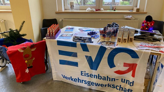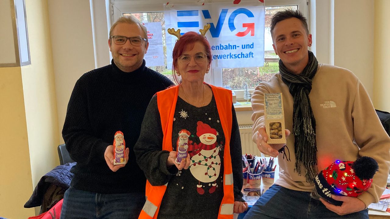 Natürlich durfte auch ein persönlicher Gruß der EVG nicht fehlen. Die "Rute" blieb dieses Jahr aber im Sack, denn die Stimmung war durchweg positiv. Besonders erfreulich: Zwei neue Mitglieder konnten während der Aktion gewonnen werden – ein echter Grund zur Freude!