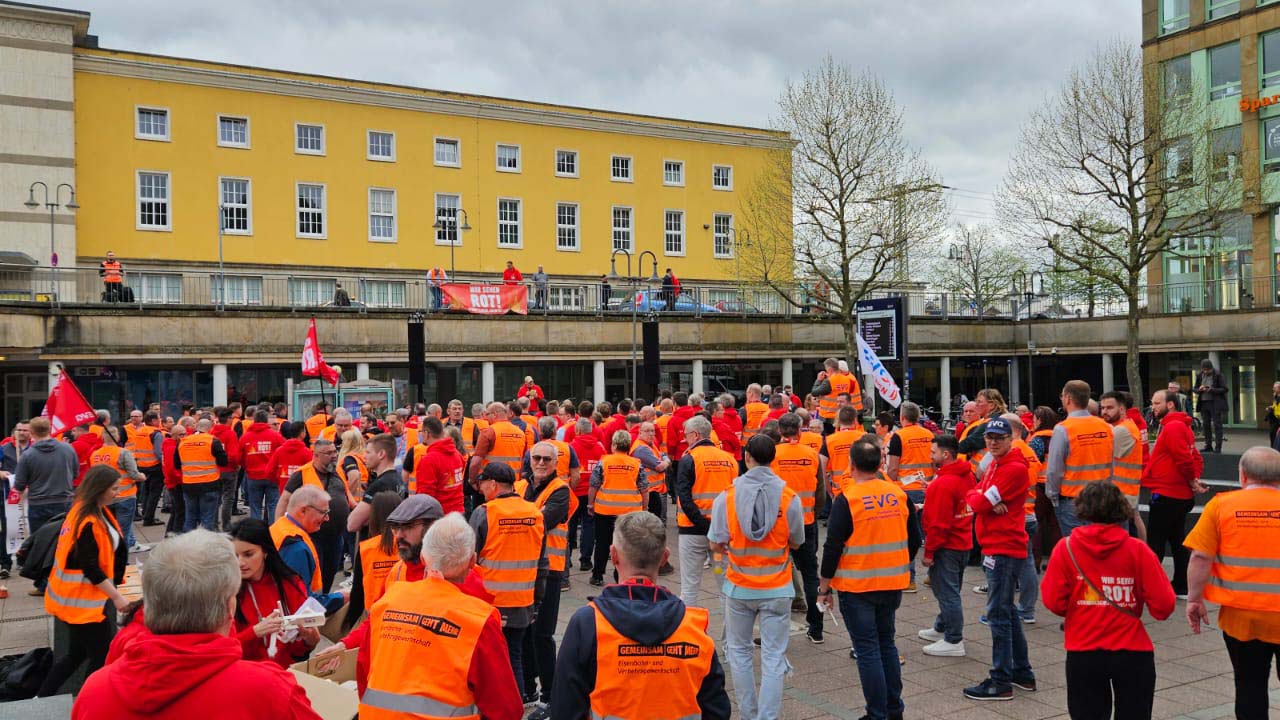 Die EVG werde auch weiterhin gemeinsam mit ihren Betriebsrätinnen und Betriebsräten gegen den geplanten Kahlschlag kämpfen - solidarisch, so wie es sich auch in Fulda wieder eindrucksvoll gezeigt habe.