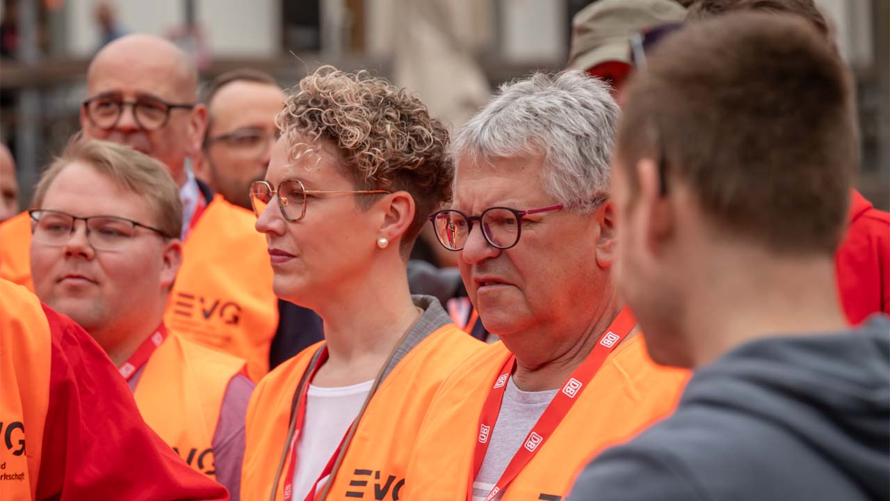 Namens der EVG appellierte sie an den Vorstand, das ernst gemeinte Verhandlungsangebot der Betriebsräte endlich anzunehmen. Nur sollte die DB AG den Weg des Konflikts verlassen.