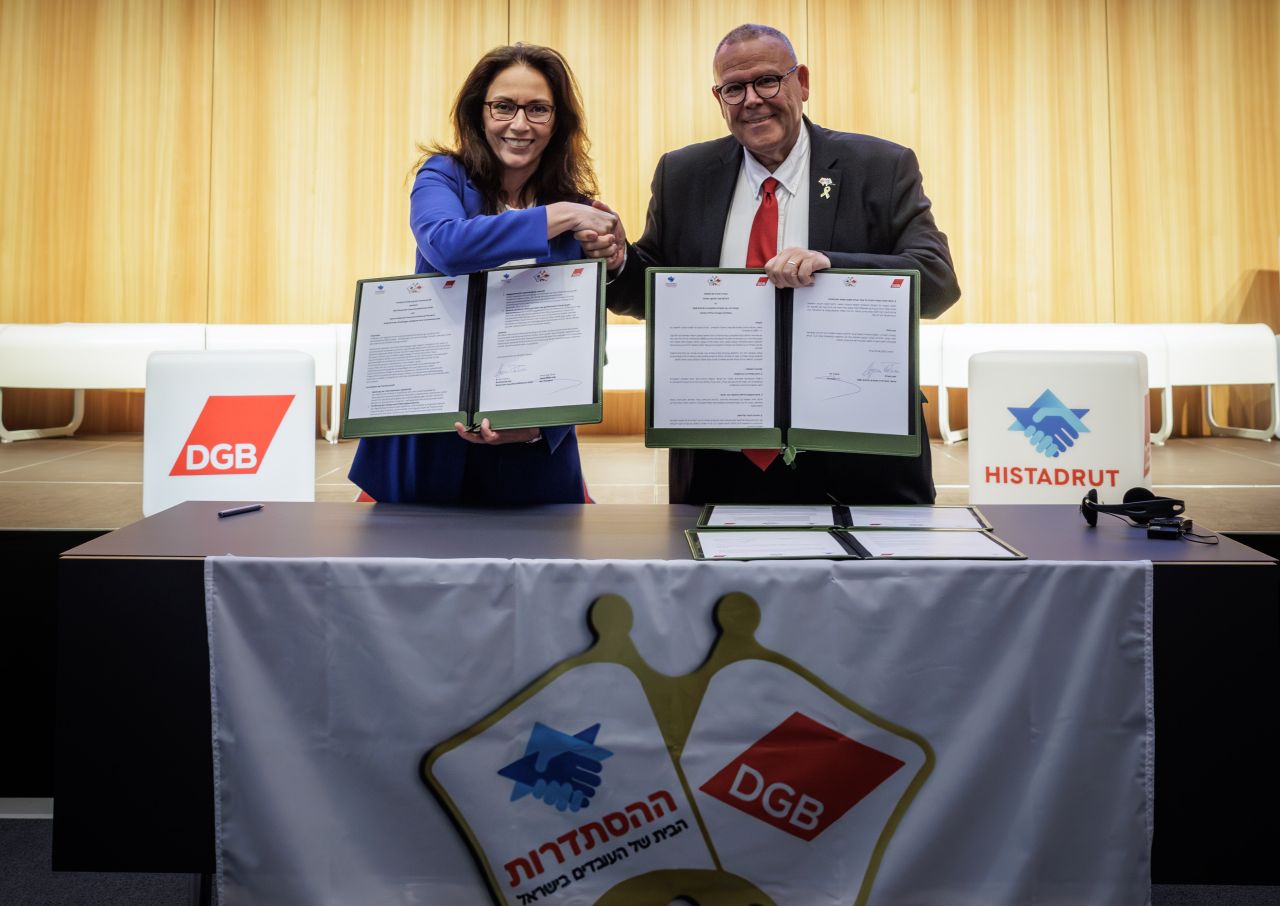 Im DGB steht das Jahr 2025 im Zeichen der besonderen Verbindung mit dem israelischen Gewerkschaftsbund Histadrut. Beide verbindet ein bereits vor 50 Jahren geschlossenes Partnerschaftsabkommen. Nun wurde es in Berlin symbolisch erneuert.