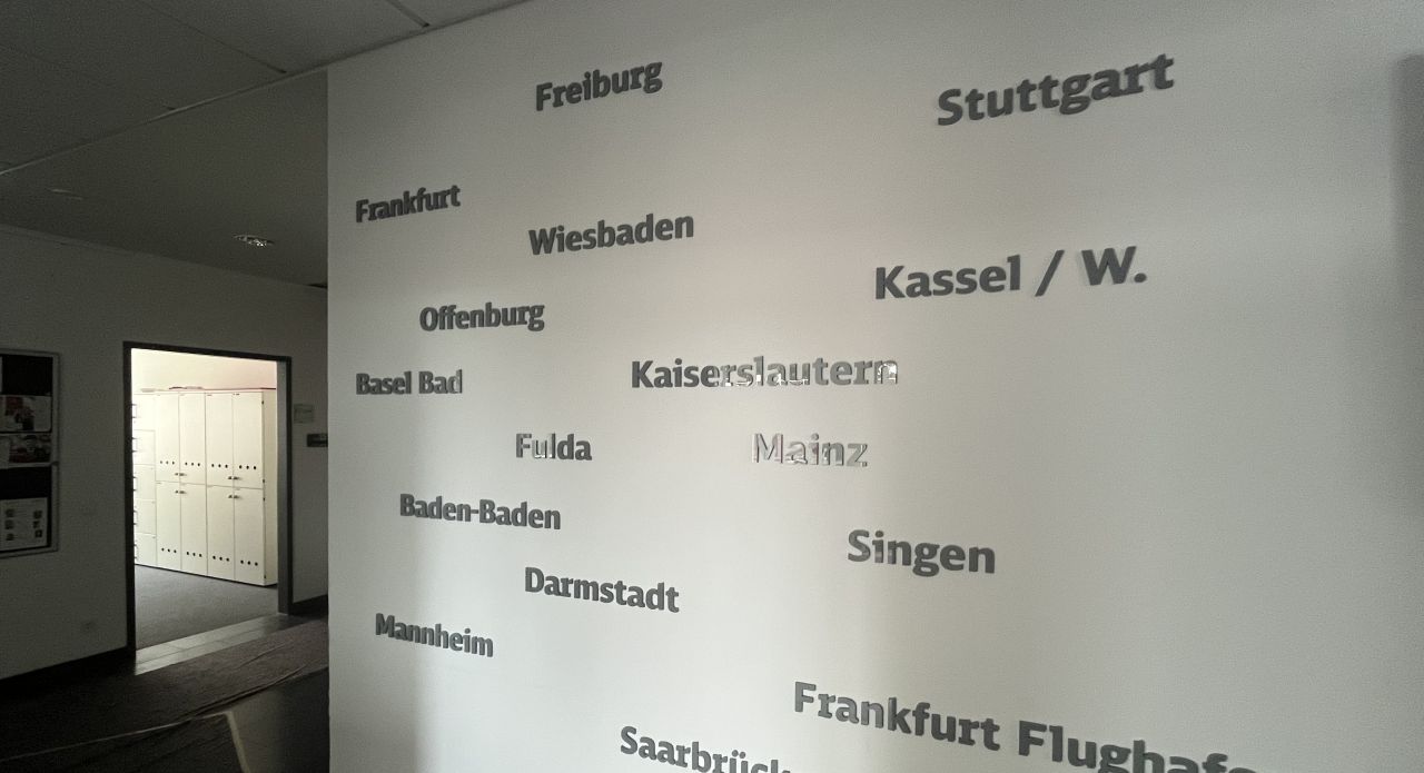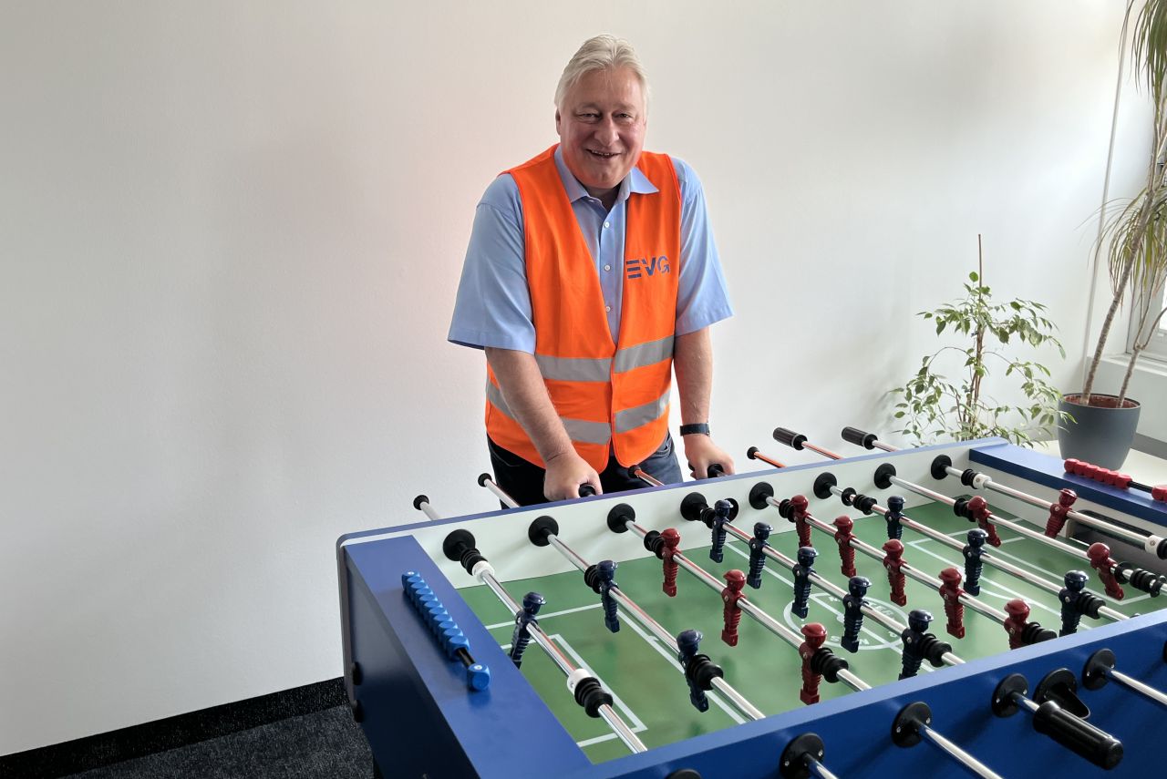 Erneuter Szenenwechsel. „Herzlich willkommen in der Einsatzstelle der Zukunft“, begrüßt uns Michael Albert beim nächsten Stopp. Das ist nun also die „neue Welt“, die uns am Vortag angekündigt wurde, und das war nicht zu viel versprochen. Hier ist Mannheim wieder vorne: Erstmals sind hier völlig neue moderne Räumlichkeiten geschaffen worden, Umkleiden, Ruheräume, ein großer Aufenthaltsraum inkl. Küche, in denen Lokführer:innen und Zugbegleiter:innen sich die UBK anlegen, pausieren, ausruhen können, „ein großer Fortschritt insbesondere für Leute mit langem Anfahrtsweg.“ Der Betriebsrat hat sogar für einen Kickertisch gesorgt. „Tolle Mitarbeiter haben tolle Räumlichkeiten verdient“, verabschiedet uns Leiter Michael Albert.